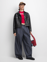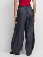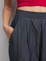 Pull-on pants, but make ‘em fashion. Featuring a dark wash denim fabric, wide leg and a elastic waist design. These pants are baggy where it counts, snatched where it matters.