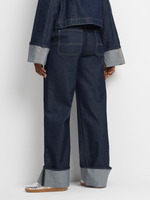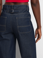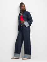 Complete your weekend look with these must-have wide leg jeans. Featuring a dark wash denim fabric. Rock these jeans with yo' fave top and complete the look with heels/sneakers and a shoulder bag.