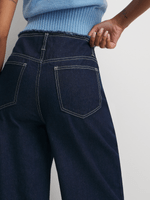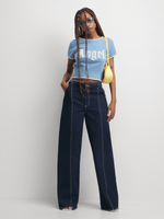 Upgrade your wardrobe with our stylish wide-leg denim. Featuring a denim fabric, a frayed waistband for a trendy touch. Perfect for any occasion, these jeans are a must-have staple for your closet.