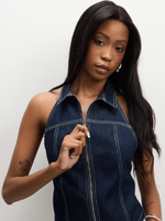 Meet your new go-to top: The FIX dark wash zip through halterneck top. Made from denim, it features a stylish zip detail and halterneck design. Perfect for any occasion, this top is a must-have for your wardrobe.