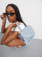 Elevate your look with The FIX's chic denim frayed mini crossbody bag. Made of PU material, this stylish accessory is perfect for everyday use. With a convenient crossbody strap and a trendy bow detail, it's the ideal mix of fashion and function.