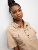 This Ecru Denim Pocket Mini Dress is a must-have for your wardrobe. Featuring a denim fabric, A-line design and pockets added for extra convenience. All packaged into one must-have season item!