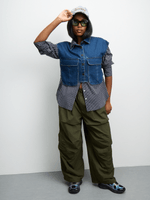 Elevate your style with our women's fatigue crinkle taslon pants featuring a cargo pocket for added convenience. Crafted from durable taslon fabric, these pants are perfect for any adventure.