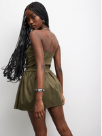 Introducing our Fatigue Utility Bandeau Mini Dress - a versatile piece for your wardrobe. Made from durable Taslon fabric, Featuring a trendy bandeau neckline and practical utility details, this dress is perfect for any occasion. Embrace effortless style with this must-have piece.