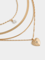 Elevate your style with our 4-layer gold necklace featuring charming heart and pearl charms. Made with high-quality metal for lasting wear. Perfect accessory to add a touch of elegance to any outfit. Trendy and versatile, a must-have for your jewelry collection.