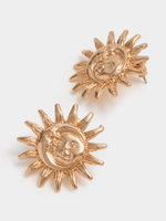 Make a statement with our stunning gold sun earrings. Crafted from high-quality metal, these earrings are a must-have accessory. The intricate design will add a touch of elegance to any outfit. Perfect for everyday wear or special occasions. Brighten up your look with these beautiful earrings.