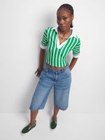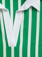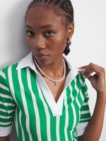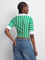 This tee is what we're vibin' with this szn. Featuring a green & white vertical stripe rib fabric, short sleeves. Pair with jeans and sneaks to complete the look.