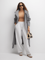 Stay cozy and stylish in our ice grey barrel jogger. Made with brushed fleece fabric for ultimate comfort. Perfect for lounging or running errands. Stay stylish and relaxed in our must-have joggers.