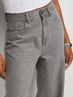 Elevate your denim game with our grey wide-leg jeans. Featuring a denim fabric, wide leg fit & embellishments that scream “spotlight’s on me, babe”. Classic yet trendy, dress it up with a pair of heels or sneakers for a more casual look.