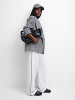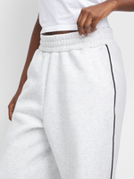 Meet our stylish grey wide-leg joggers with contrast piping for a trendy look. Made from a brushed fleece fabric, these joggers are perfect for casual outings or lounging at home. Pair with your favorite top for a laid-back vibe.