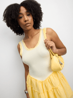 Elevate your summer wardrobe with our lemon Flippy Mini Dress! Made from cool cotton, this dress features a flattering scoop neck and a playful flippy hem. Perfect for any occasion, this dress is a must-have staple.