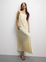 This lemon coloured maxi dress is the perfect addition to your wardrobe. Featuring a crepe fabric, fit & flare sexy open back with pleated design. Style with strappy heels or sneakers for a scorching look.