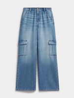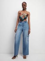 Complete your weekend look with these must-have cargo jeans. Featuring a light wash denim fabric. Rock these jeans with yo' fave top and complete the look with heels or sneakers and a shoulder bag.