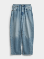 Complete your weekend look with these must-have barrel jeans. Featuring a light wash denim fabric. Rock these jeans with yo' fave top and complete the look with heels/sneakers and a shoulder bag.