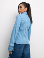 This shirt brings all the drama! Featuring a light wash denim fabric, fitted with a button down design. Its got that extra touch to turn basic into baddie.