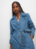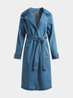 This light wash denim trench is serving major main character energy—longer length for max impact, button-down for that effortless flex. This coat is serving classic trench vibes, but make it denim? Yeah, you need this!