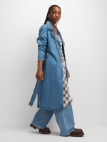 This light wash denim trench is serving major main character energy—longer length for max impact, button-down for that effortless flex. This coat is serving classic trench vibes, but make it denim? Yeah, you need this!