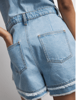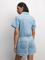 Get ready for summer with this frayed denim shortall. Featuiring a light wash denim fabric & a stylish frayed hem design. Style it with ya fave pair of sneaker and some fiyah acessories. it's a statement screamin' I'm here and I'm fierce!