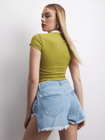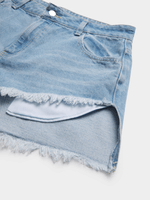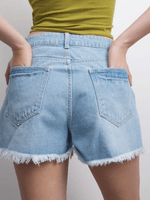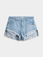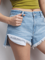 Get your summer style on point with this rip & repair mini denim shorts. Featuring a light wash denim, frayed edges and edgy distressed detail. It’s giving off-duty baddie all summer long. Pair with a baby tee, oversized shades, and some chunky kicks cause these shorts? They do damage!