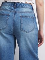 Complete your weekend look with these must-have wide leg jeans. Featuring a rip & repair design & a light wash denim fabric. Rock these jeans with yo' fave top and complete the look with heels/sneakers and a shoulder bag.
