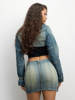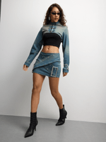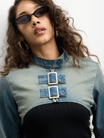 Introducing our Light-Wash Denim Top with Buckles - perfect for a casual yet stylish look. This super cropped top features long sleeves and is made from quality denim fabric. Add this trendy piece to your wardrobe today!