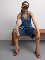 This women’s waistcoat is serving retro drip with a glow-up. Featuring a light wash denim fabric, cropped fit and tie up design. Rock it layered over a tee, or solo with wide-leg jeans for a double denim slay.