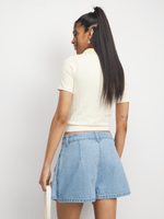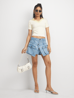 Meet your new favorite summer staple. Featuring a light wash denim fabric, must-have utility pockets for your essentials. Skirt feels, shorts realness – it’s the best of both worlds!