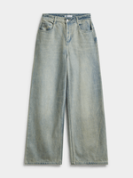 Complete your weekend look with these must-have wide leg jeans. Featuring a light wash vintage denim fabric. Rock these jeans with yo' fave top and complete the look with heels/sneakers and a shoulder bag.