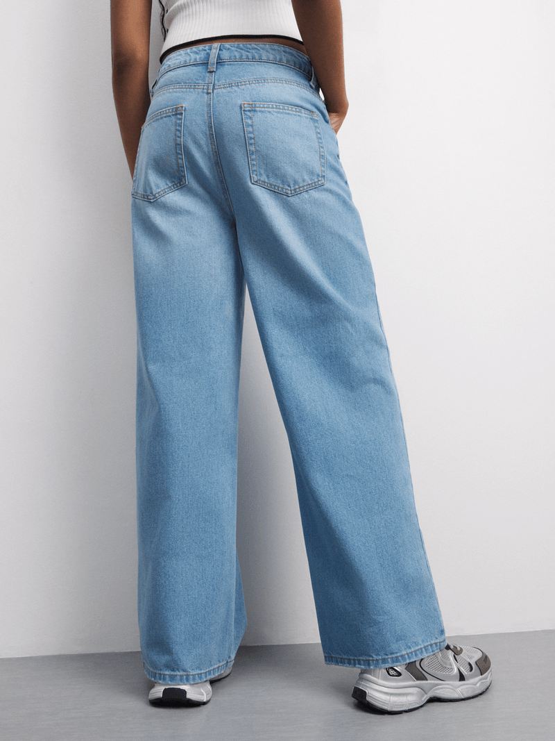 Step out in style with this light wash wide leg denims. Featuring a denim fabric, a wide leg fit & a print design that makes every step a flex. Elevate your wardrobe with this chic and versatile piece. Rock ‘em with a cropped tee, chunky sneakers, and sunnies for a look that’s pure fiyah!