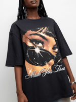 Unleash your bold style with The FIX's Made You Look Black Graphic Top. Crafted from soft Single Jersey fabric. With a crew neck and short sleeves, it's perfect for casual days. This top is a must-have addition to your wardrobe.