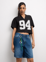 Upgrade your summer wardrobe with this mid wash denim shorts. Featuring a 100% cotton fabric & bermuda fit. You can style ’em with a cropped tank and chunky kicks for a casual flex, or dress ’em up with a fitted blazer and mules either way your slaying babe!
