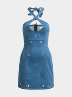 Introducing The FIX medium wash denim eyelet dress. Featuring a medium wash denim with intricate eyelet details, this dress is perfect for casual or dressy occasions. Perfect for a night out with the girls.