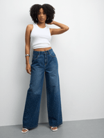 Elevate your DNM game with thesemedium wash wide leg jeans. Featiuring a wide leg fit, Denim fabric and embellishments for a touch of flair. Rock these with a cute crop and pointy heeled boots. Your new go-to for makin a statement.