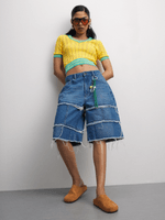 These bermuda shorts come through with that chill, off-duty vibe. Featuring a medium wash denim fabric & longer length fit. Pair with a crop, kicks or a cute heel to add a little attitude — easy drip, no stress.