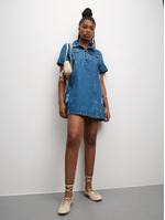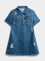 Get ready for summer with this denim mini dress. Featuiring a medium wash denim fabric & a stylish rip design. Style it with ya fave pair of sneaker and some fiyah acessories. it's a statement screamin' I'm here and I'm fierce!