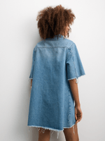Introducing our FIX Medium Wash Ripped Shirt Dress for a laid-back cool vibe. Made with denim fabric to keep you stylish and comfortable. Features a trendy ripped hem for a touch of edgy flair. Perfect for any casual occasion.