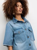 Introducing our FIX Medium Wash Ripped Shirt Dress for a laid-back cool vibe. Made with denim fabric to keep you stylish and comfortable. Features a trendy ripped hem for a touch of edgy flair. Perfect for any casual occasion.