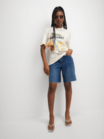Upgrade your summer wardrobe with this mid wash bermuda denim shorts. Featuring a denim fabric, pockets and frayed seams. Style ’em with a cropped tank and chunky kicks for a casual flex, or dress ’em up with a fitted blazer and mules either way your slaying babe!