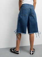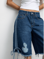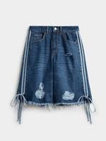 Introducing our Women's Mid-Wash Sporty Stripe Denim Ripped Bermuda Shorts, crafted for comfort and style. Made from quality denim with a warm wash option. Perfect for any casual occasion. Experience fashion without compromise.
