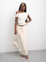 Wrap yourself in effortless style with The FIX textured maxi skirt in a soft milk shade. Crafted from crepe fabric, this wrap skirt features a flattering silhouette perfect for any occasion. This co-ord is a must-have staple.