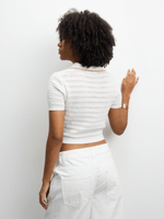 Elevate your style with our chic milk knit crochet polo collar top. Made of soft cotton, this top features intricate crochet details and a flattering polo collar. Perfect for any occasion, this top will quickly become a wardrobe staple.