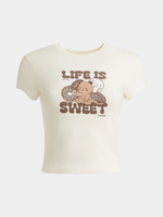 Update your casual wardrobe with The FIX's playful baby tee, this top is serving skin & mayor sass. Featuring a milk coloured cotton lycra blend fabric, crop fit and a fun graphic print. Pair it with cargos, denim, or whatever’s vibin’—she goes with literally everything!