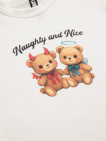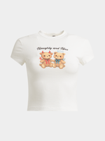 Update your casual wardrobe with The FIX's playful baby tee, this top is lowkey lethal—servin’ skin & sass. Featuring a cotton lycra blend milk coloured fabric, crop fit and a fun graphic print. Pair it with cargos, denim, or whatever’s vibin’—she goes with literally everything!