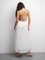 This milk-toned maxi dress is light, airy and built to stun. Featuring a fit & flare design, sexy open back detail & a georgette fabric. Style with strappy heels or sneakers for a scorching look.