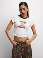 Update your casual wardrobe with The FIX's playful white baby tee, this top is lowkey lethal—servin’ skin & sass. Featuring a cotton lycra blend fabric, crop fit and a fun graphic print. Pair it with cargos, denim, or whatever’s vibin’—she goes with literally everything!