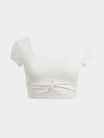 Elevate your workout wardrobe with our Milk Scoop Neck Twisted Top from the FIX Women's Sports lux collection. Made from a soft polyester blend, this short-sleeved top features a flattering scoop neck design. Perfect for all your active wear needs.