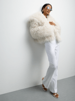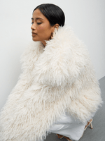 Stay cozy and stylish with our Shaggy Cropped Fur Coat in a beautiful milk hue. Made from faux fur, this hand washable piece is perfect for chilly days. Designed to make you feel fabulous, this coat is a must-have addition to your wardrobe.