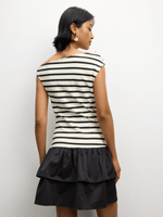 Get ready to turn heads in the FIX Mini Stripe Rib&Taslon Asymmetric Frilly Dress. This chic dress features an eye-catching asymmetrical hem and playful frills, perfect for any occasion. Made from a comfortable rib fabric. Stand out in style with this must-have wardrobe piece from The FIX.
