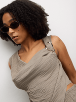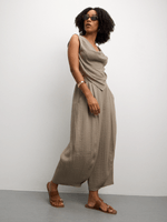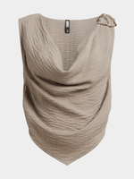 Elevate your style with our Mocha Co-Ord Cowl Top, crafted from breathable linen. This top features hardware detailing for an edgy touch. Dress it up or down for effortless chic vibes. Satisfaction guaranteed.