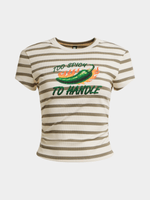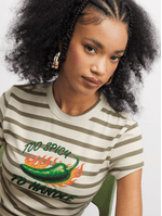 Update your casual wardrobe with The FIX's playful stone & fatigue baby tee, this top is lowkey lethal servin’ skin & sass. Featuring a rib fabric, side ruch, crop fit and a fun graphic print. Pair it with cargos, denim, or whatever’s vibin’ she goes with literally everything!